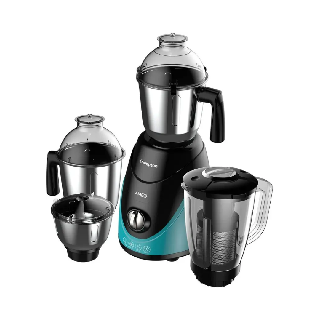 Grind masalas, blend chutneys, or make fresh fruit juices with the Crompton Ameo Mixer-grinder. Its 750 W motor efficiently uses energy for high performance. And, its Maxigrind technology promotes sufficient airflow to keep this mixer-grinder well-ventilated and make it durable. And, this mixer-grinder comes with a blender jar with a fruit filter so that you can enjoy pulpy juice. Moreover, the uniquely designed, smooth contours of this mixer-grinder make it easy to clean.